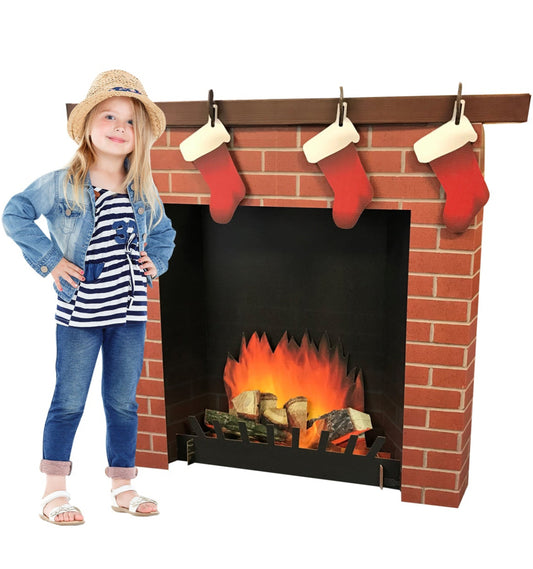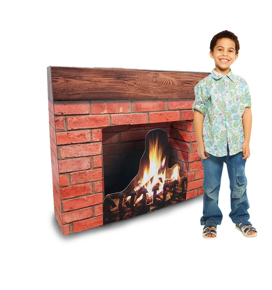 Life-Size 3D Brick Fireplace Cardboard Cutout