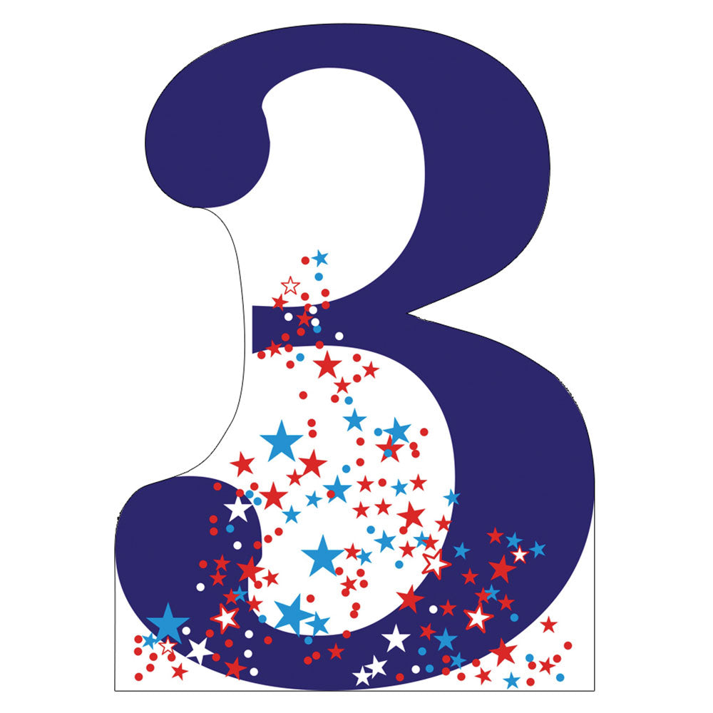 This cardboard cutout of the number 3 is the perfect way to highlight a third birthday, anniversary, or special occasion. Designed with a full-color print on durable cardboard, this standup offers a vibrant, festive presence at any party. It features a built-in easel, allowing it to stand on its own and be displayed easily in any space.